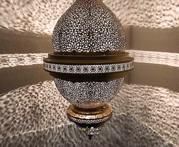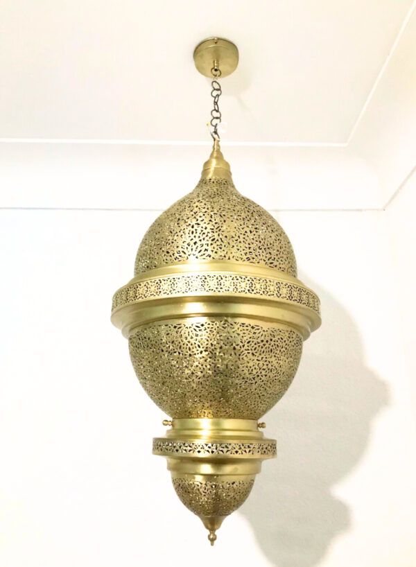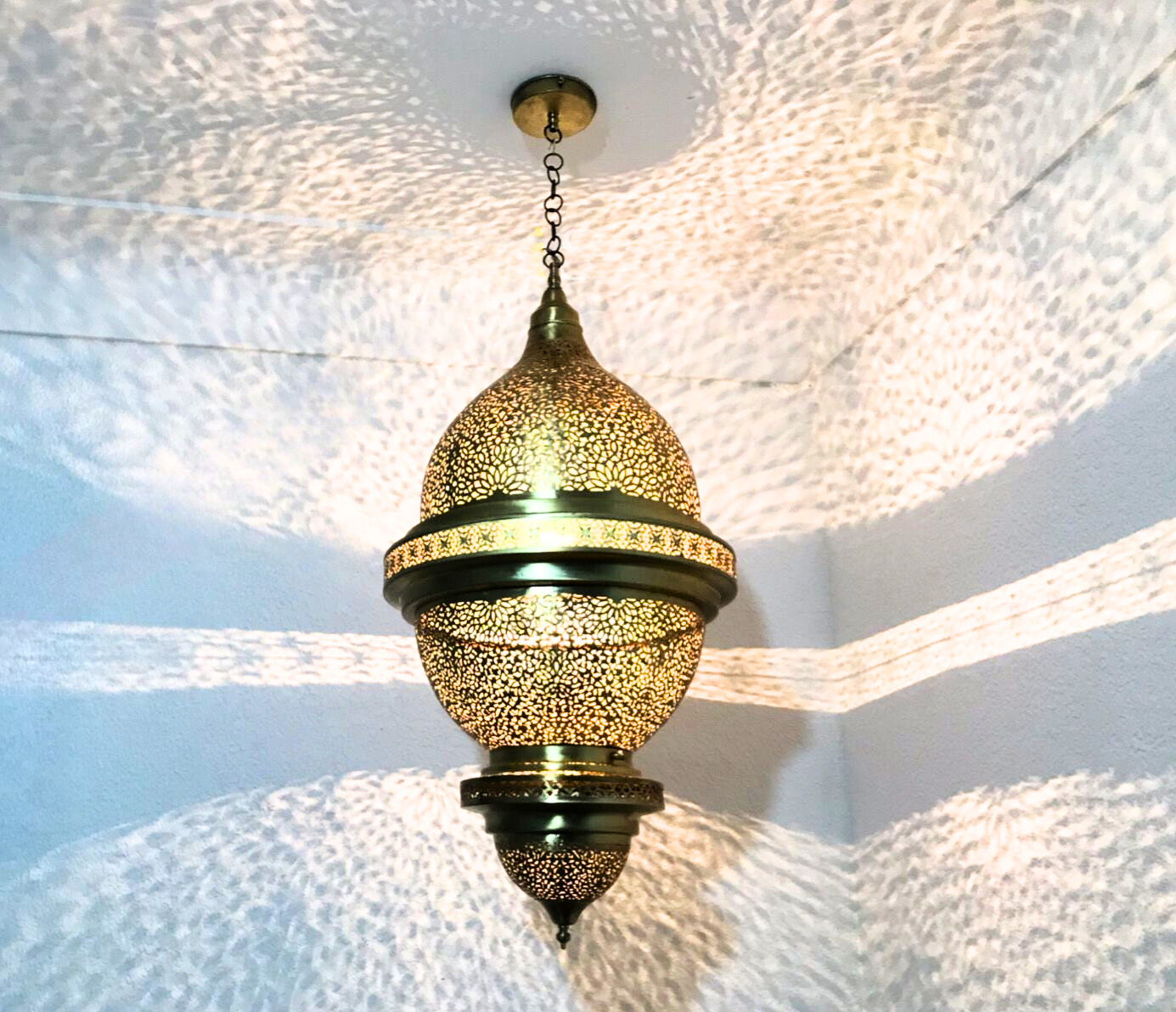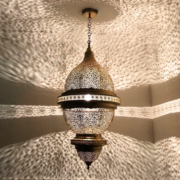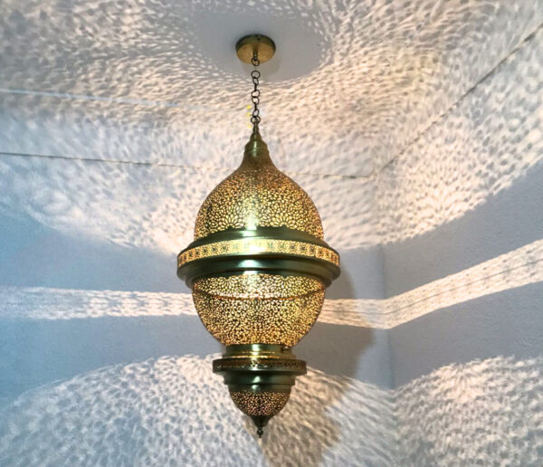 Enter a world of unmatched beauty and ambiance with the Moroccan lighting pendant, a stunning masterpiece that transcends ordinary lighting. Crafted with meticulous attention to detail from the finest brass, this pendant lamp is truly extraordinary.